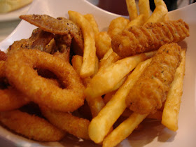 綜合拚盤:炸雞翅、洋蔥圈、起司條、暑條,都不錯吃,炸的不油膩。