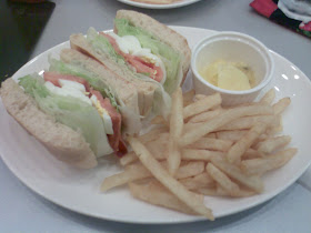 燻鮭魚三明治(250含配菜暑條),麵包可以選全麥吐司戈拖鞋麵包,我點的是拖鞋麵包,另我失望的燻鮭魚竟然帶有腥味....在煙燻過的鮭魚中竟然還帶有腥味......一整個不合格。暑條不油表皮脆口好吃。